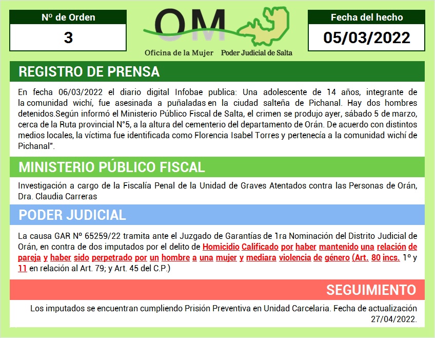 Registro Provincial de Femicidios y Muertes Violentas y Dudosas de Mujeres